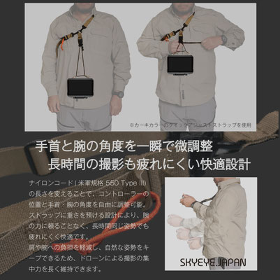クイックアジャストストラップ for DJI製 コントローラー は、ドローン撮影の現場で実際に求められていた機能を徹底的に反映した、実用性重視のプロ設計ストラップです。